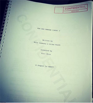 Dian Sastrowardoyo dipastikan kembali memerankan Cinta pada film "Ada Apa Dengan Cinta? 2" yang merupakan kelanjutan film romantis Rangga (Nicolas Saputra) dan Cinta dalam "Ada Apa Dengan Cinta?", dan diapun mengunggah skenario film tersebut."I'm all jittery inside.... gathering my courage to open the first page... ????????????????????????????OMG OMG OMG this is really happening.... gilaaaaaaakkkk penasaran paraaaahhh....!!!!! here it goes... Bismillah," tulis Dian dalam keterangan foto.Mira Les...