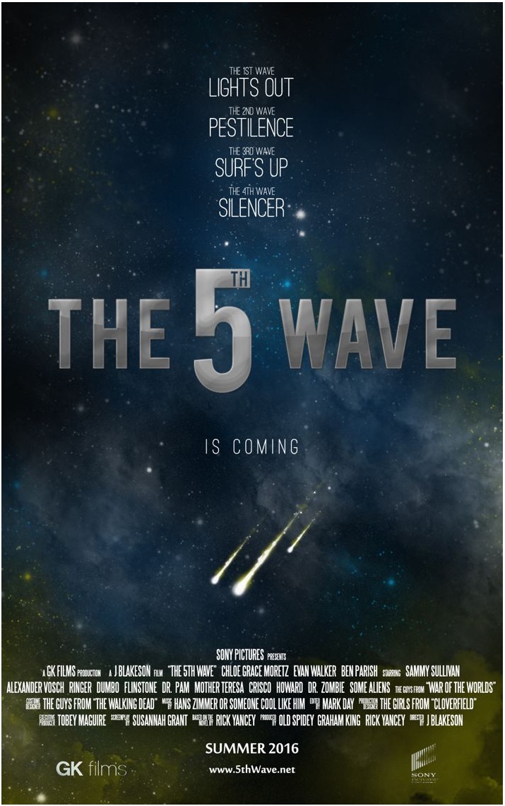 "The 5th Wave" diadaptasi dari novel karya Rick Yancey yang diril tahun 2013 dengan judul yang sama. Film ini akan mengisahkan penyerangan Alien yang dilakukan dalam 5 gelombang. Gelombang 1 akan mematikan daya secara permanen, dalam hal ini bumi akan diatur kembali ke zaman batu. Gelombang 2 akan menjadi tsunami besar yang akan membunuh semua kota yang berada di pesisir. Gelombang 3 akan ada suatu wabah yang disebabkan oleh burung hingga menyisakan hanya beberapa orang yang hidup. Gelombang 4 m...