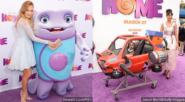 Sementara itu, J.Lo hadir ditemani anak kembarnya, Max serta Emme, nampak imut dengan mini dress rancangan Zuhair Murad dipadukan dengan sepatu Louboutins. Selain mengisi suara untuk karakter Lucy, J.Lo juga menyanyikan soundtrack film "Home", "Feel the Light".