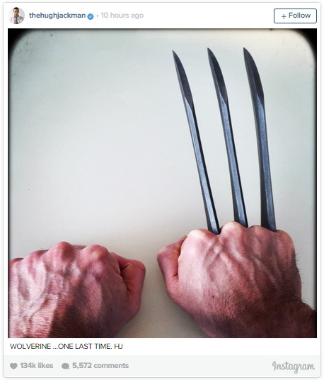 Dikutip dari akun Instagram pribadinya (thehughjackman), Jackman mengunggah foto tangan yang salah satu nya terdapat tiga cakar pisau yang terkenal menjadi senjata ciri khas dari Wolverine. Ia menambahkan keterangan yang cukup mengejutkan bertuliskan "Wolverine"? untuk terakhir kalinya. HJ".